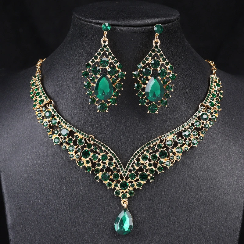 - ডিজাইন: ক্ল্যাসিক V-শেপ নেকলেস, যার কেন্দ্রে রয়েছে একটি নজরকাড়া টিয়ার-ড্রপ ক্রিস্টাল পেনডেন্ট। প্রতিটি অংশ সূক্ষ্মভাবে সজ্জিত ছোট ছোট ক্রিস্টাল দিয়ে তৈরি, যা প্রতিটি আলো পড়লেই ঝলমল করে ওঠে।